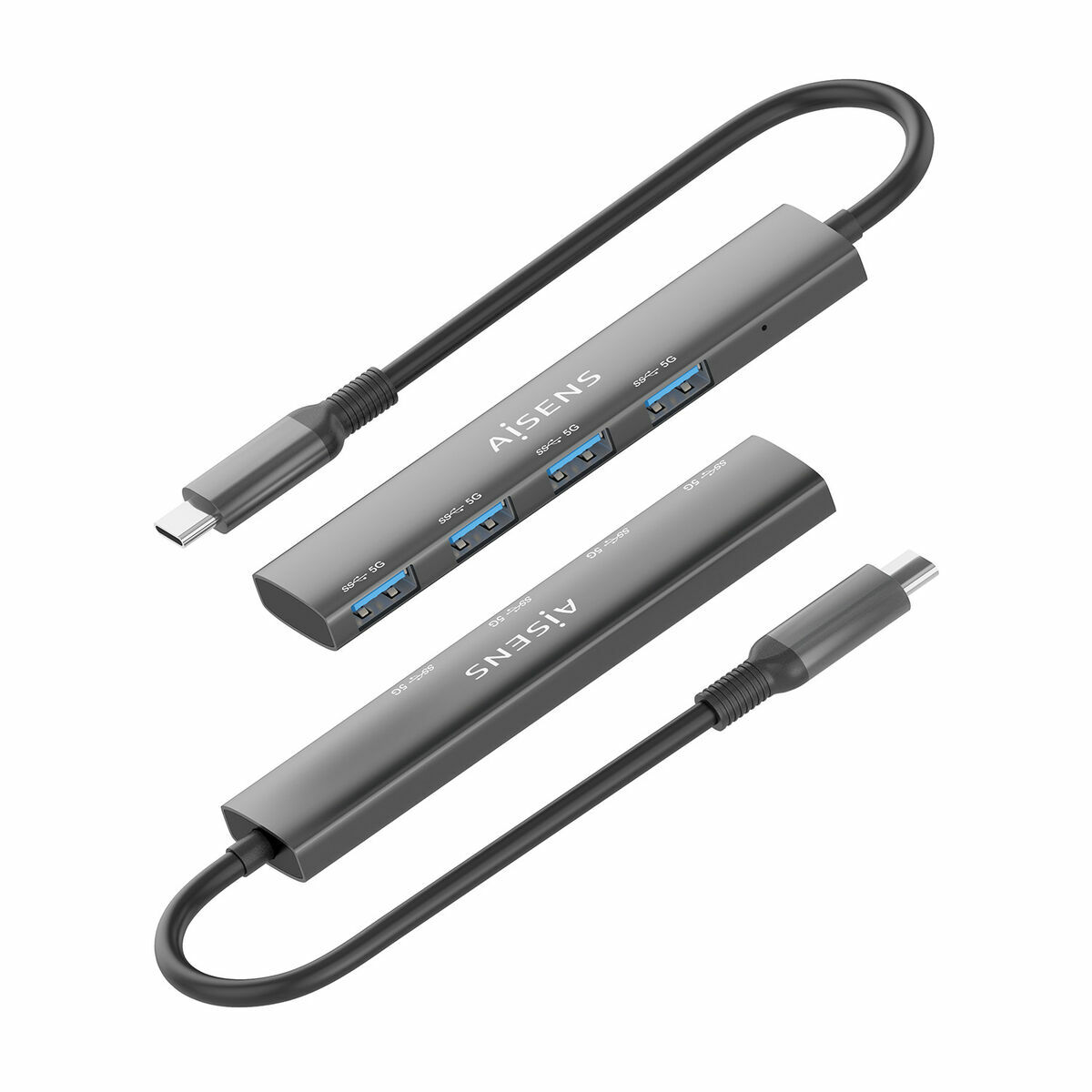 The AISENS USB adapter is a practical and efficient solution to expand the connectivity of devices with USB ports, ideal for those who need to connect multiple peripherals to modern computers or laptops. This multi-device hub features an elegant grey finish and is made of durable plastic, offering lightness and durability for daily use. It has a male USB-C interface for direct connection to USB-C port devices and provides expansion to four USB A 3.2 Gen 1 (3.1 Gen 1) ports, compatible with the USB 3.2 standard, ensuring fast and stable data transfer with theoretical speeds up to 5 Gbps. This feature allows simultaneous connection of devices such as external hard drives, flash drives, keyboards, mice, or printers, optimizing space and workspace management. Additionally, its design is plug and play, meaning no driver installation is required, allowing immediate and easy use on compatible operating systems. The integrated cable is approximately 15 cm long, providing flexibility to position it without cables interfering with the workspace. The wired connection guarantees stability and universal compatibility across multiple environments, facilitating port expansion without technical complications. Overall, this AISENS USB hub is a functional, versatile, and convenient accessory to expand connectivity in work or home spaces that require connecting several USB devices simultaneously without losing speed or transfer quality. An essential accessory for those looking to maximize the use of their USB-C ports with the guarantee of a recognized brand in affordable tech solutions.